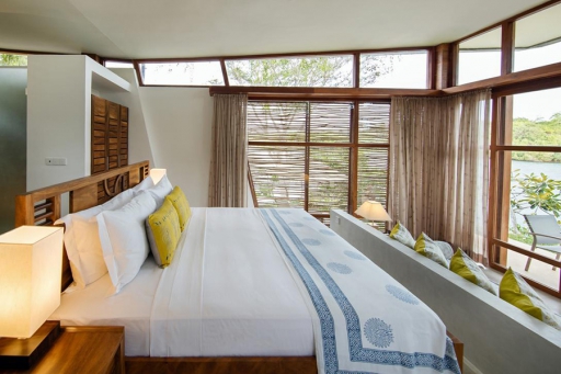 Nature is the centrepiece of Tri, a wellness retreat set atop the Koggala Lake in the Galle District of Southern Sri Lanka. Carefully designed and crafted, Tri tips its hat to Mother Earth from every direction, from the curling layout of the property to the materials used to build each room. At the heart of Tri lies the Water Tower, a unique structure covered in cinnamon wood that now houses three luxurious rooms. The library and yoga studio float in a bamboo grove and offer guests a peaceful retreat where they can admire the beautiful details of the wooden architecture.